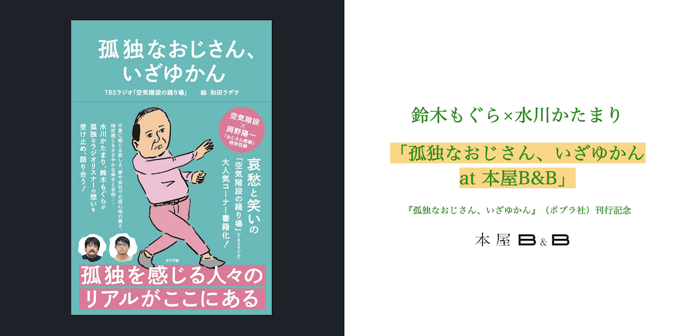 イベントでは、書籍刊行までの裏話とともに、会場にて「孤独なおじさん、いざゆかん」コーナーを実施! 「踊り場」リスナーから寄せられた「こどおじ・こどおばメール」をその場でご紹介します!
