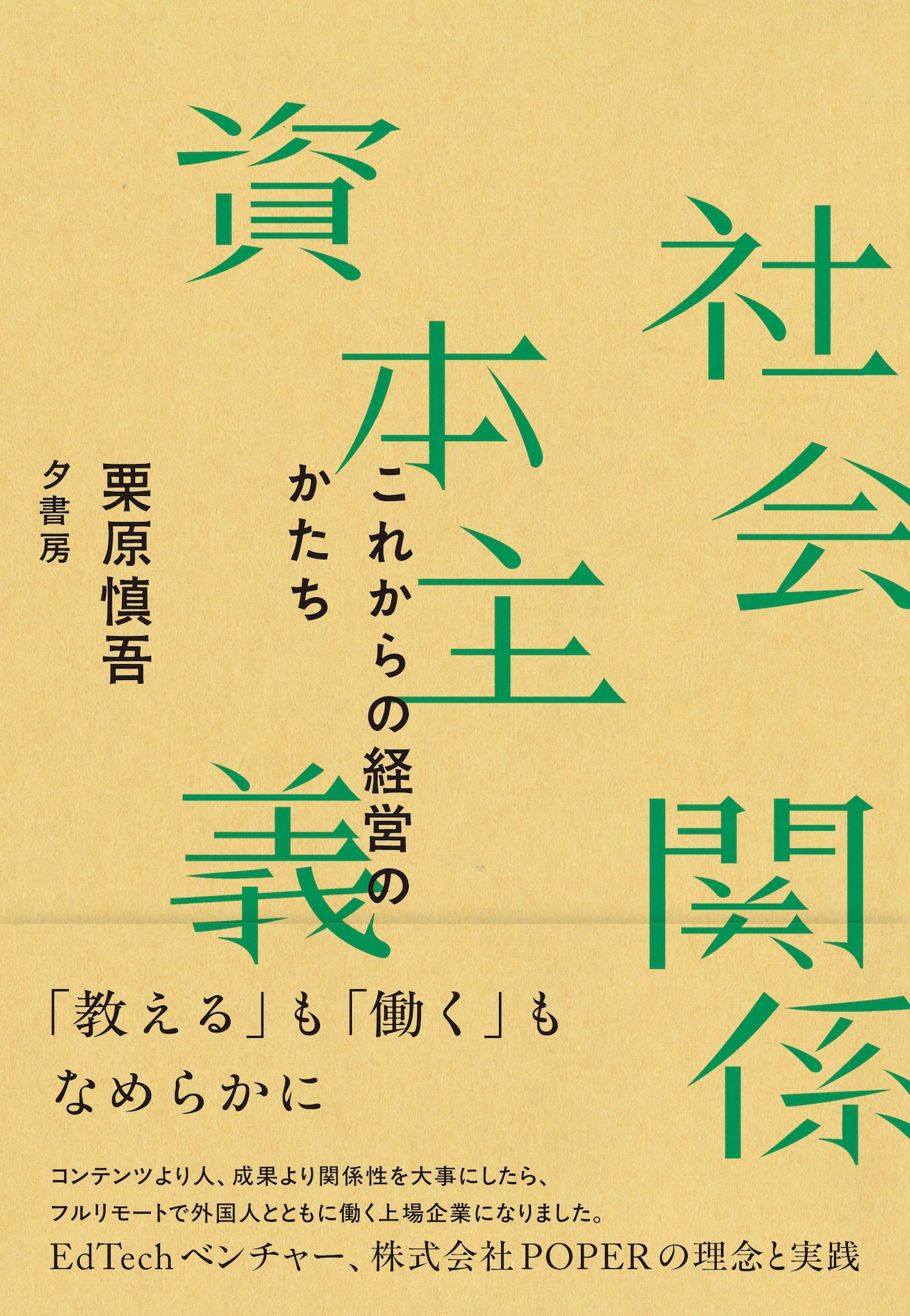 2月27日、夕書房より『社会関係資本主義-これからの経営のかたち』が発売されます。 著者は、学習塾向けのコミュニケーションプラットフォーム「Comiru(コミル)」などを提供する株式会社POPER代表の栗原慎吾さん。