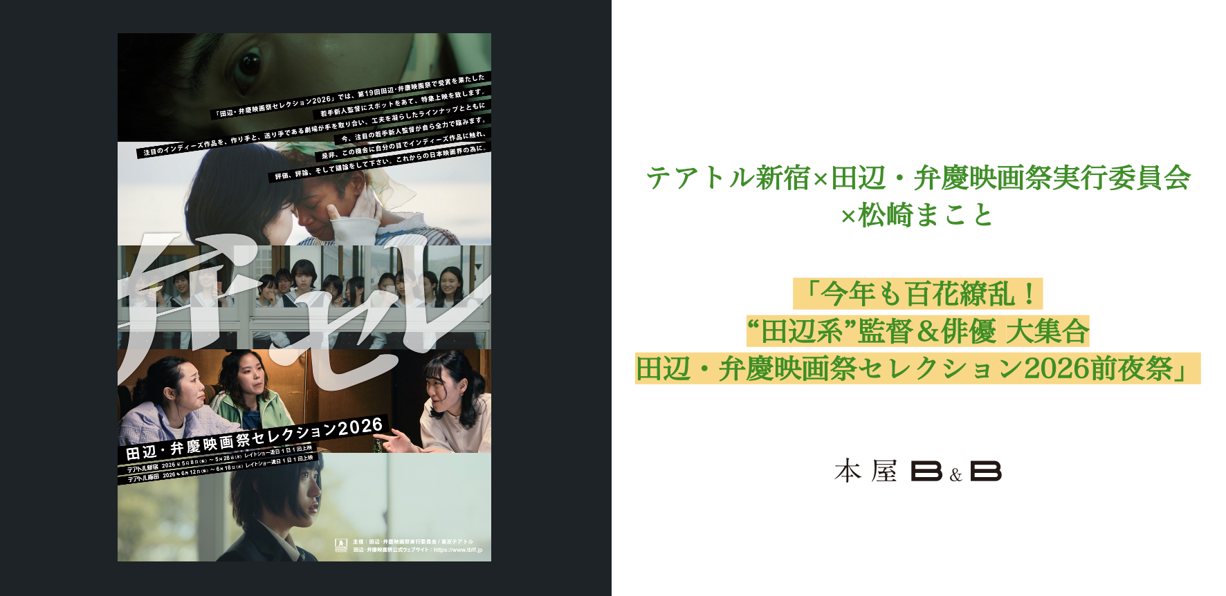 「今年も百花繚乱!“田辺系”監督&俳優 大集合 田辺・弁慶映画祭セレクション2026前夜祭」
